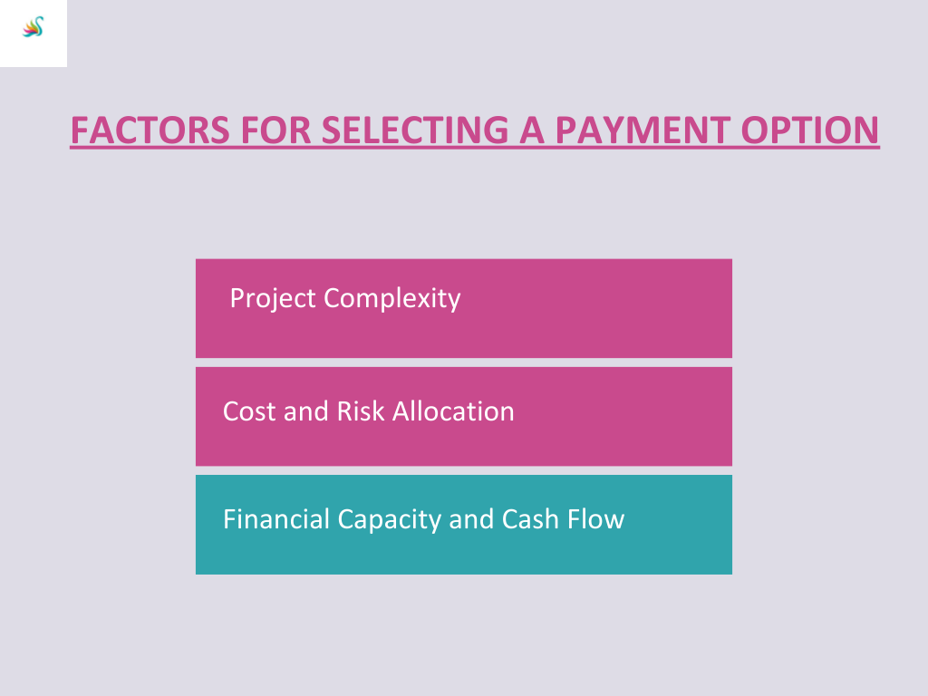 When selecting a payment option for a power plant construction project, contractors and project owners should consider several factors including: