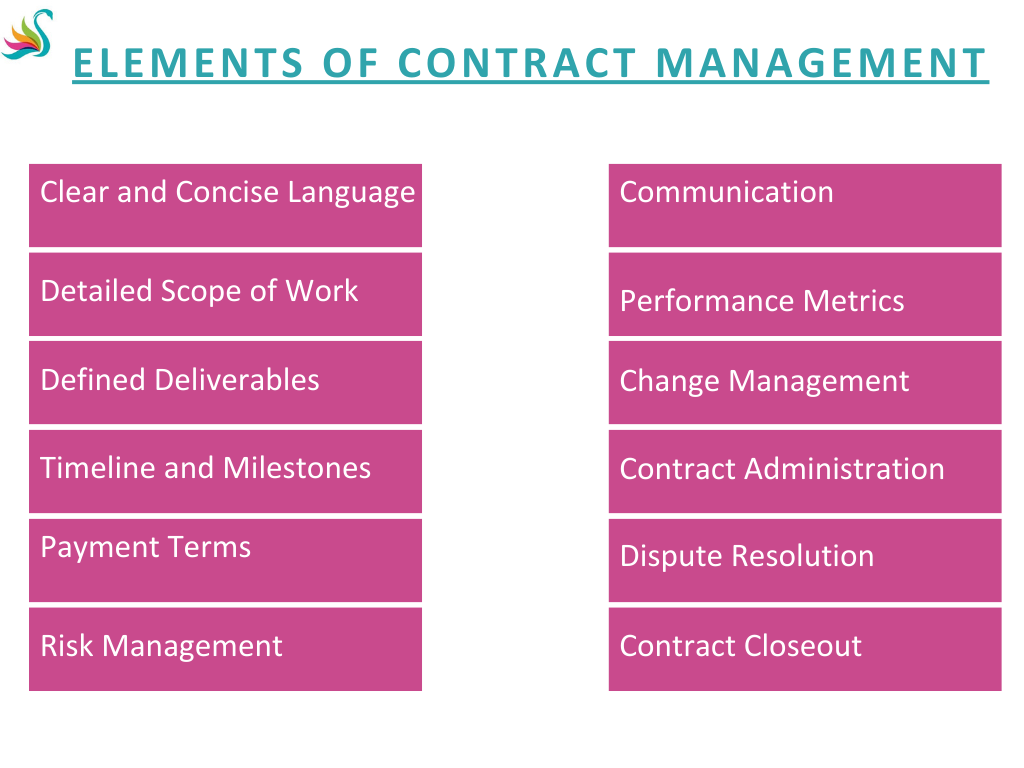 In conclusion, successful contract management requires attention to detail and a comprehensive understanding of the key elements involved. By focusing on clear and concise language, a detailed scope of work, defined deliverables, timelines and milestones, payment terms, risk management, communication, performance metrics, change management, contract administration, dispute resolution, and contract closeout, you can ensure that your contract is successful and that both parties are satisfied with the outcome.